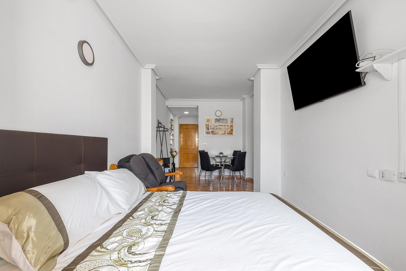 A well-maintained studio for sale, located in a functional area of Torrevieja, just minutes from supermarkets, gyms, and other amenities that make everyday life easier. With a constructed area of 36 square meters, this property represents an excellent opportunity as a second home or as an investment for vacation rentals.~~The studio is located in a building constructed in 2003 and is delivered furnished, allowing for immediate use without the need for renovations. The space is well utilized and offers a bright and functional atmosphere.~~One of the strong points of this property is its south-facing terrace, which guarantees excellent natural light throughout the day. This outdoor space is perfect for setting a table and enjoying breakfast, reading in the sun, or relaxing with a cup of coffee in the morning.~~The community offers highly valued common areas, including a communal pool for cooling off in the warmer months and a communal solarium ideal for sunbathing and unwinding.~