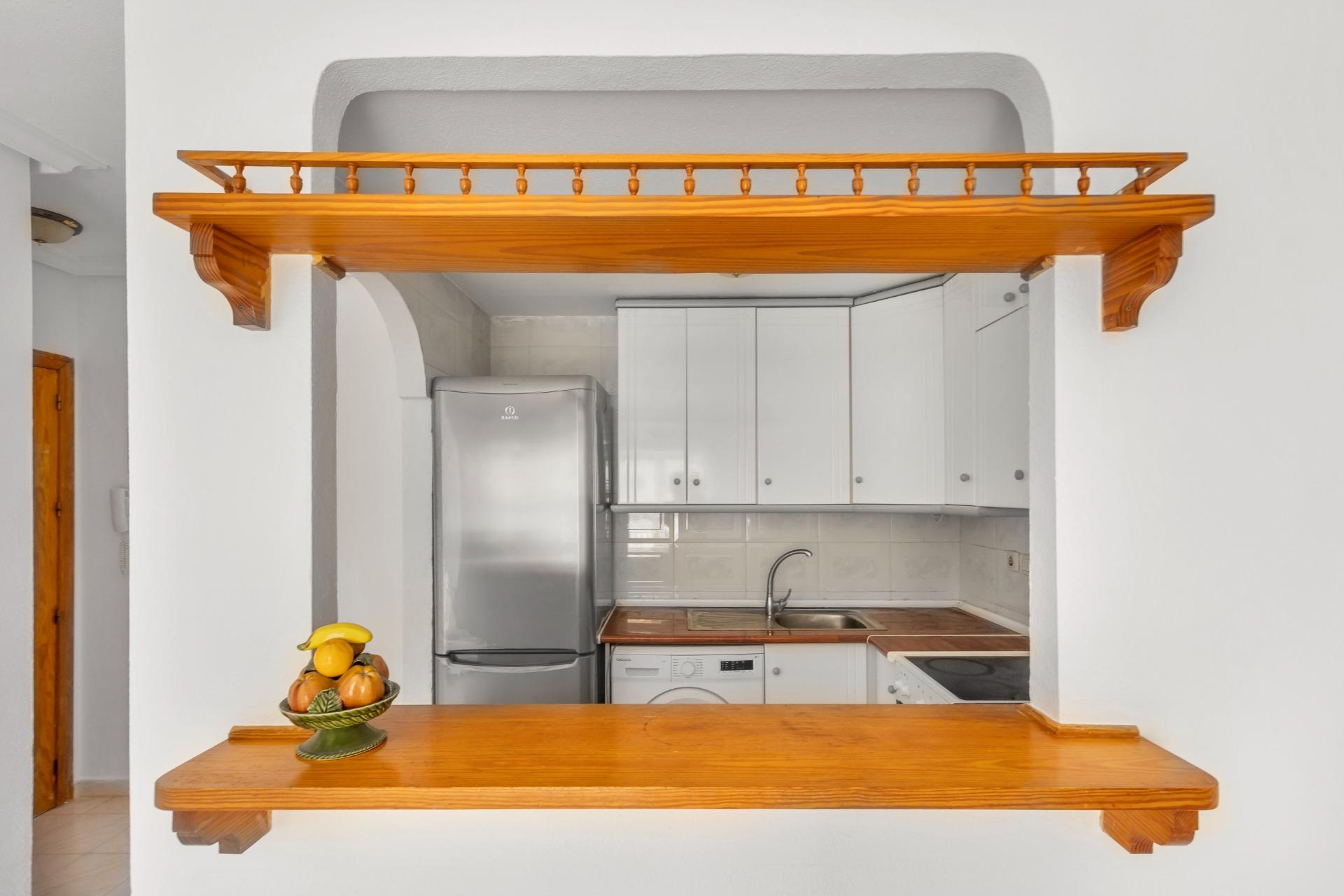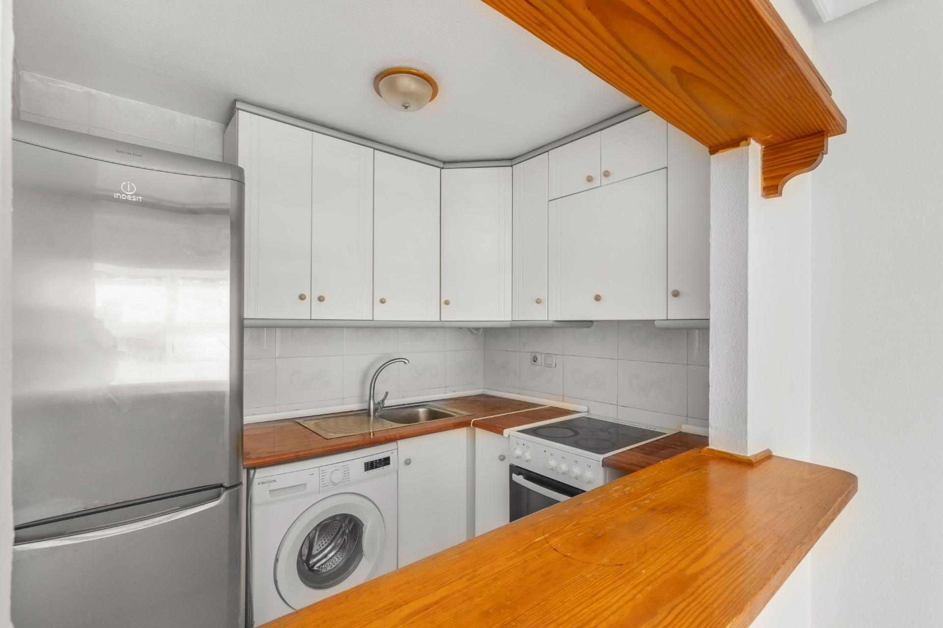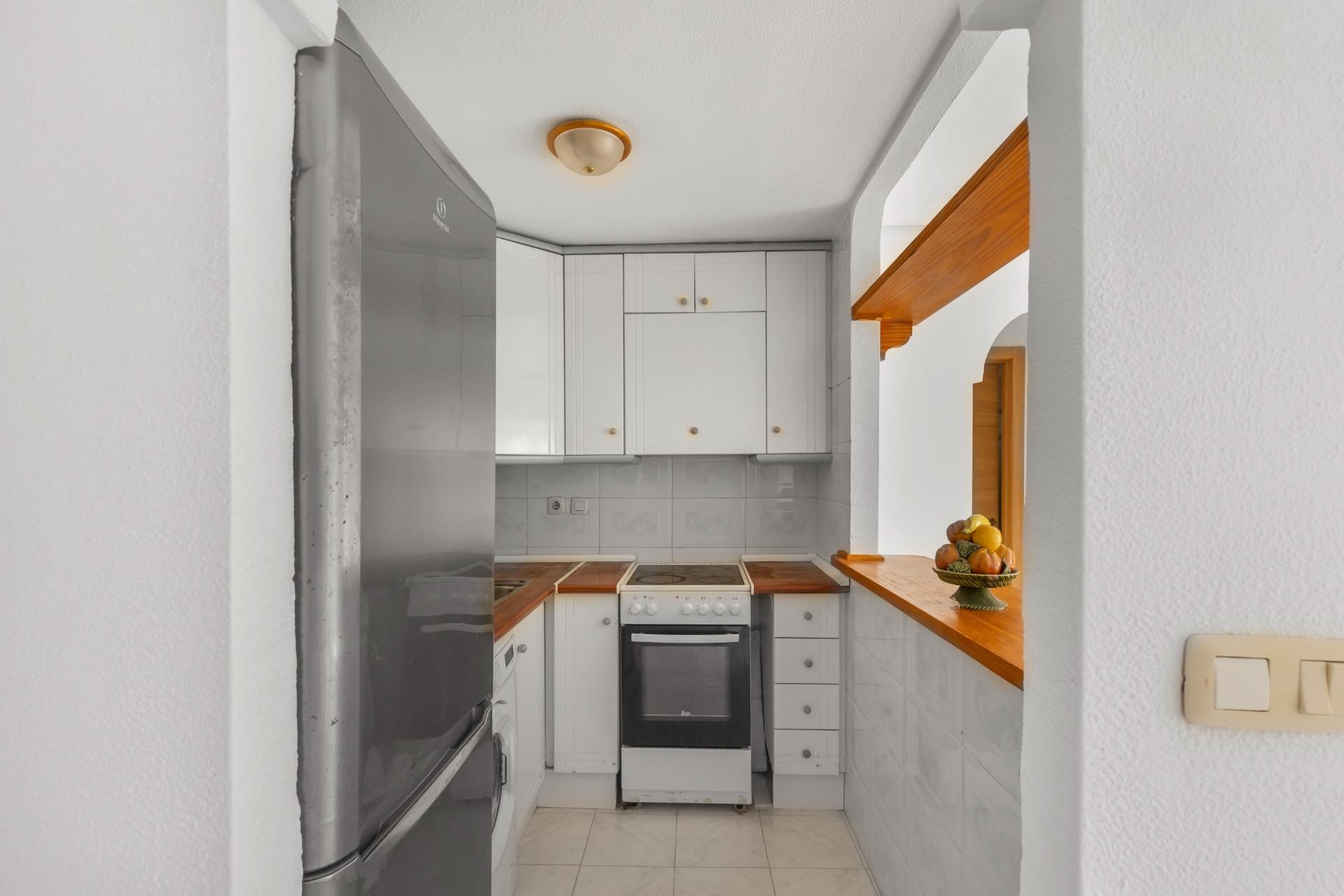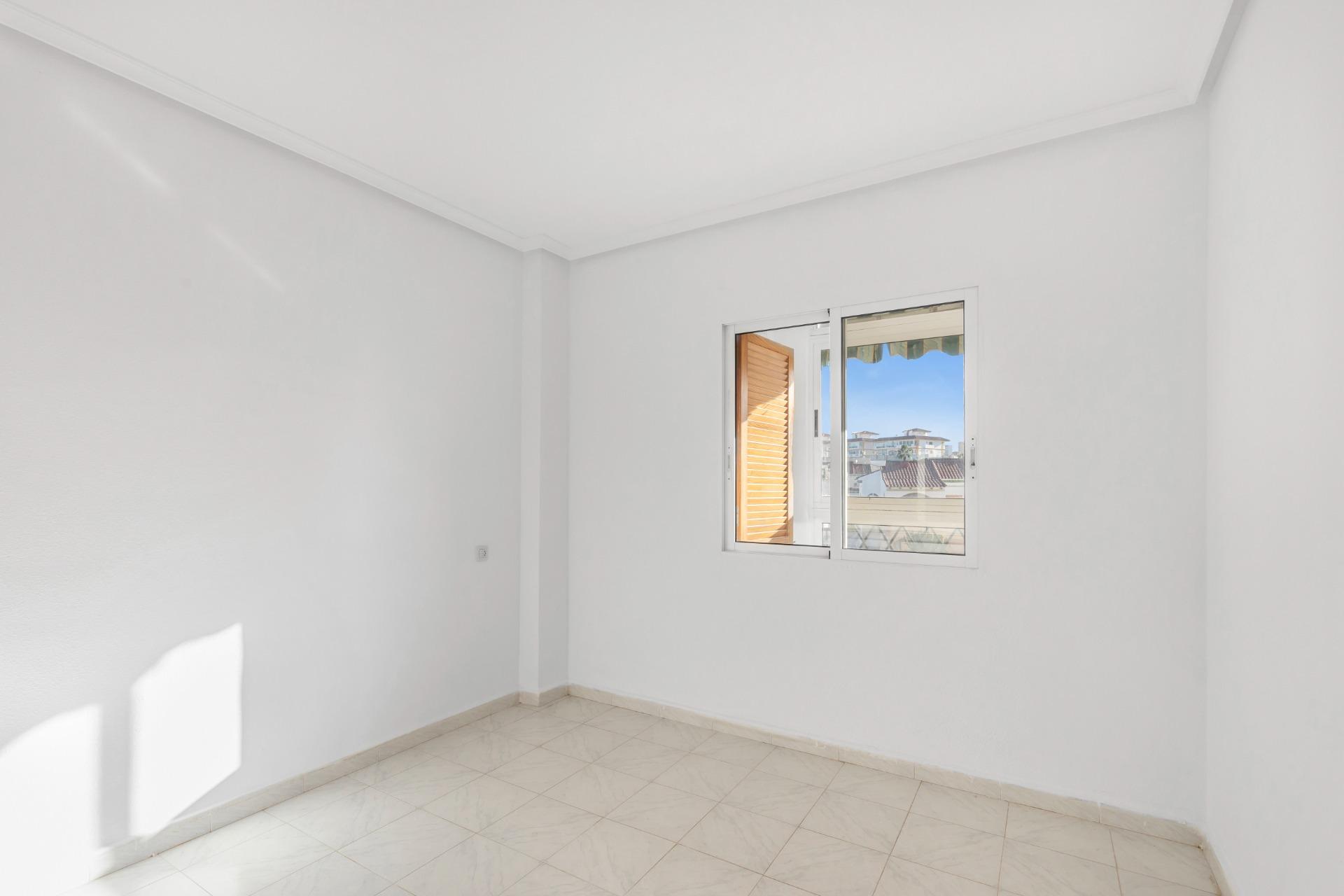 A sunny apartment is for sale in La Mata, just 500 meters from the beach. It features two double bedrooms and a bathroom. One of the highlights of this apartment is its private, south-facing terrace, offering pleasant views of the communal pool. It’s the perfect spot for enjoying breakfast in the sun, reading, or simply relaxing. Located in one of the most sought-after areas of La Mata, the apartment is surrounded by all kinds of amenities: a bus stop, health center, supermarkets, restaurants, and a pharmacy, allowing for a comfortable and convenient lifestyle without needing a car.~Community fees: €56 per month.~Taxes: IBI €140 per year.~